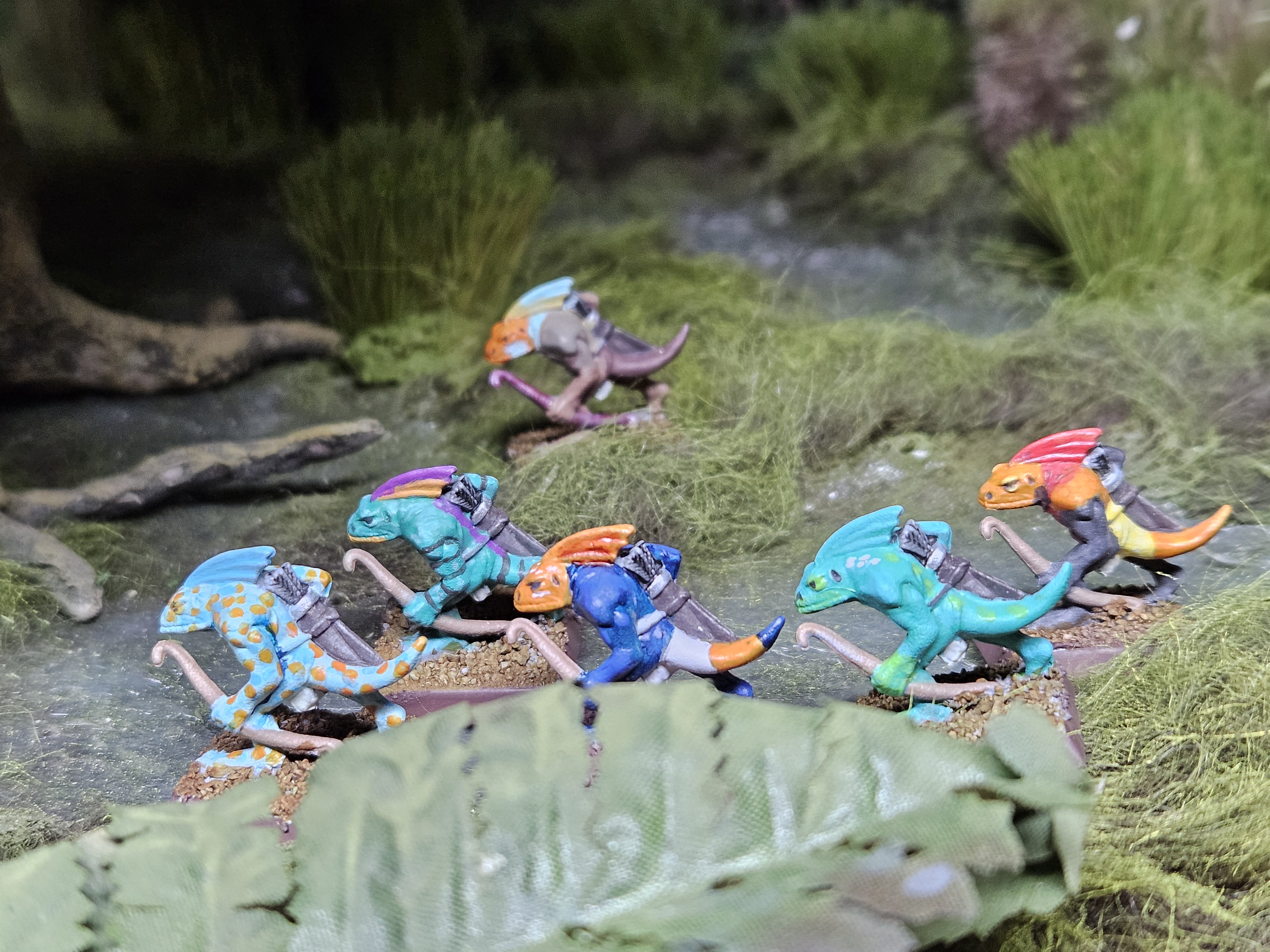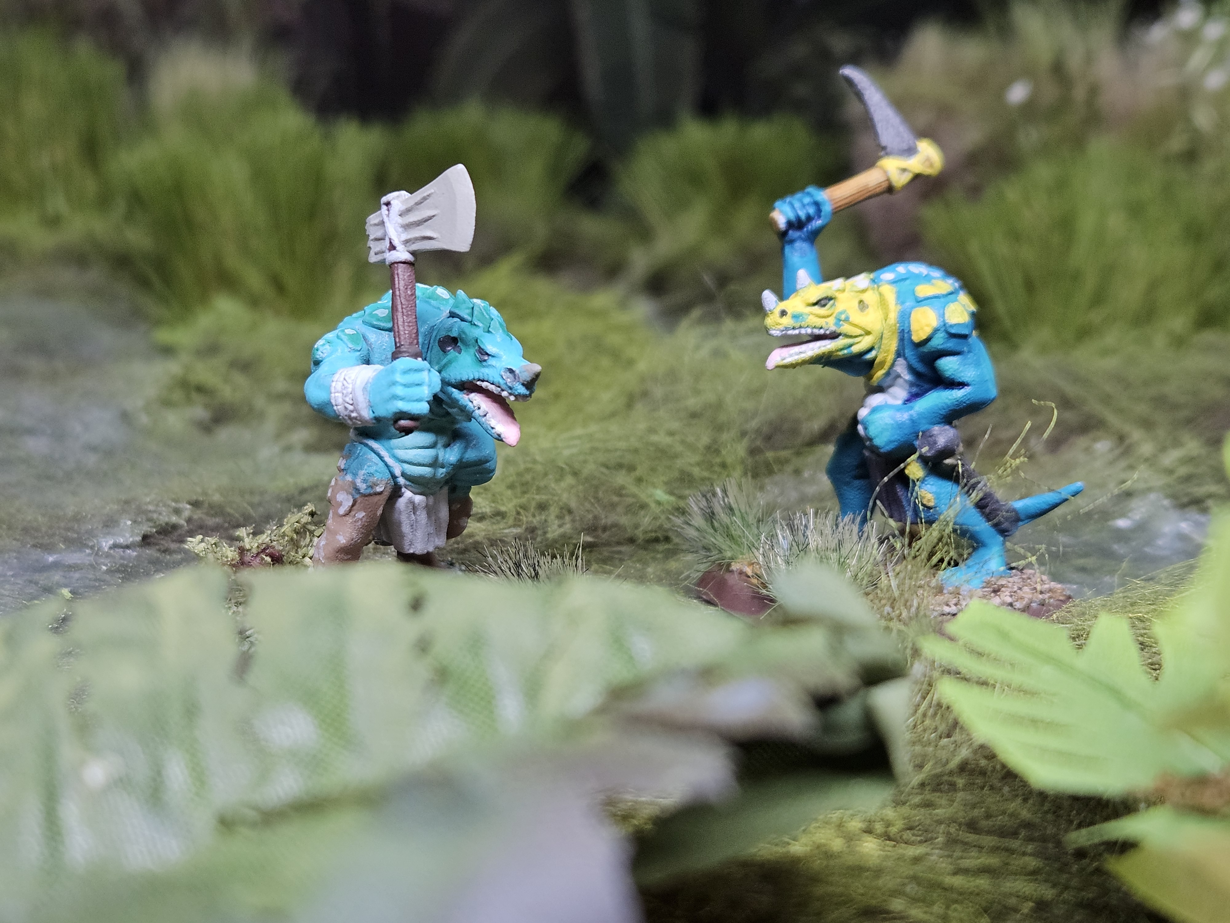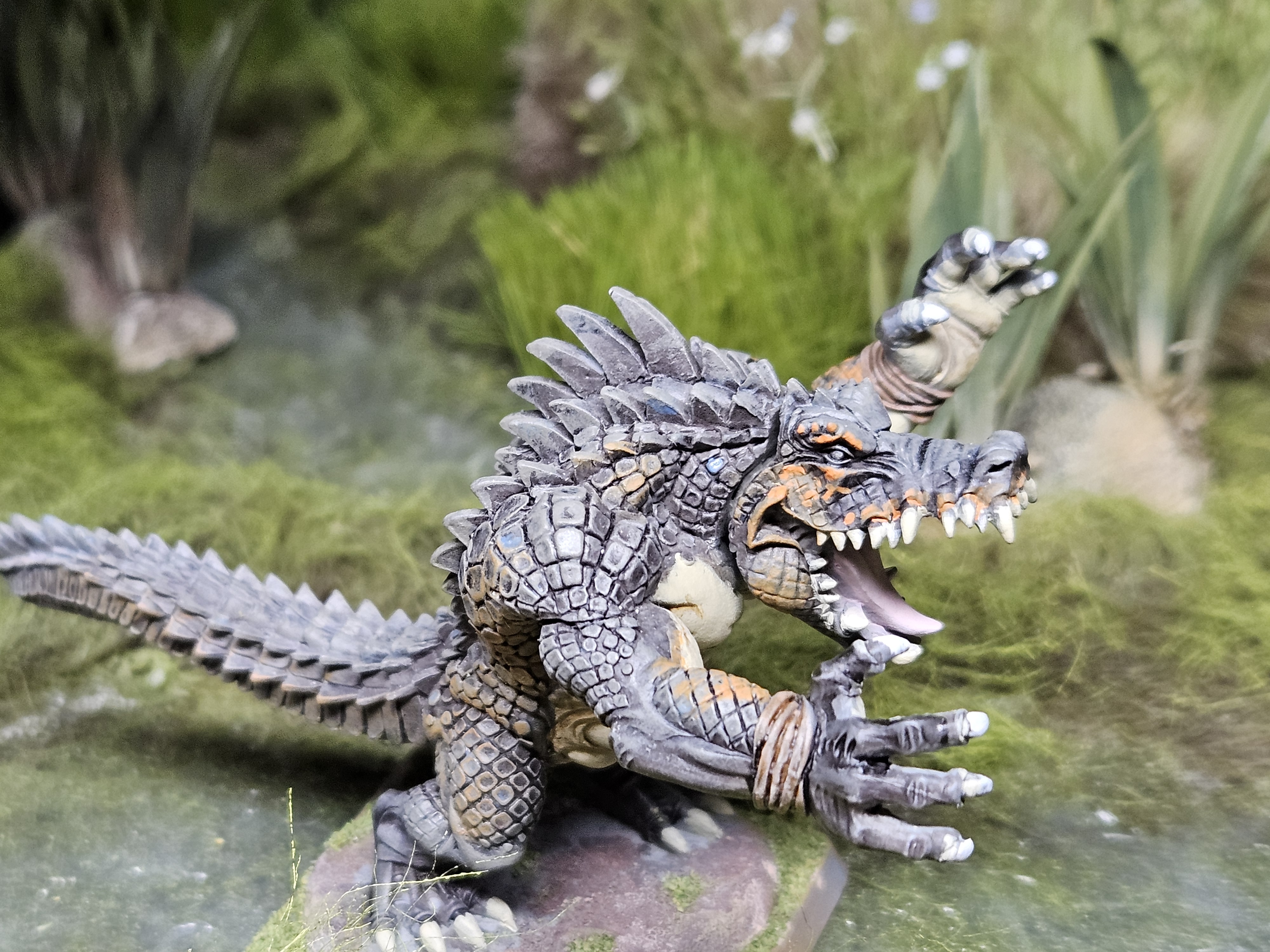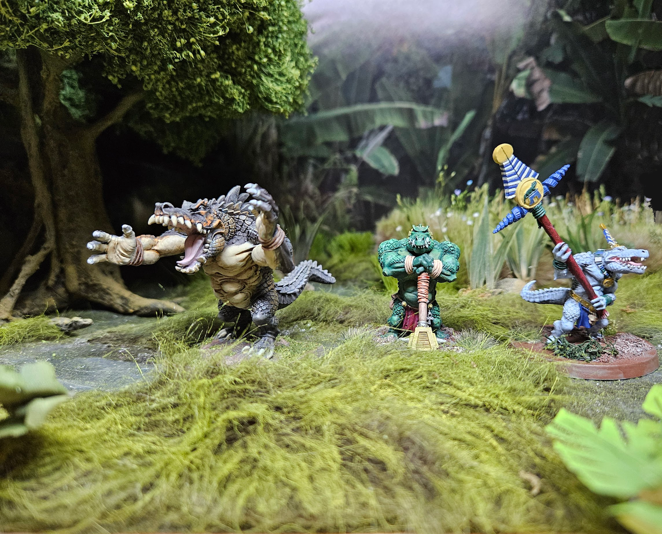 The minis in this army are (mostly) inspired by real-world herps. Attempts are made to pull from a variety of lizard families, but emphasis is on eye-catching and beautiful lizards, rather than being truly representative of all lizards (which tend to be single color, green, brown, or black, which does not make for an interesting army). Some models are exceptions: the Kappa is inspired by a variety of artworks and statues depicting the mythological creature, and many of the crocodilians are brightly colored like Kremlings rather than their muted real-world counterparts.