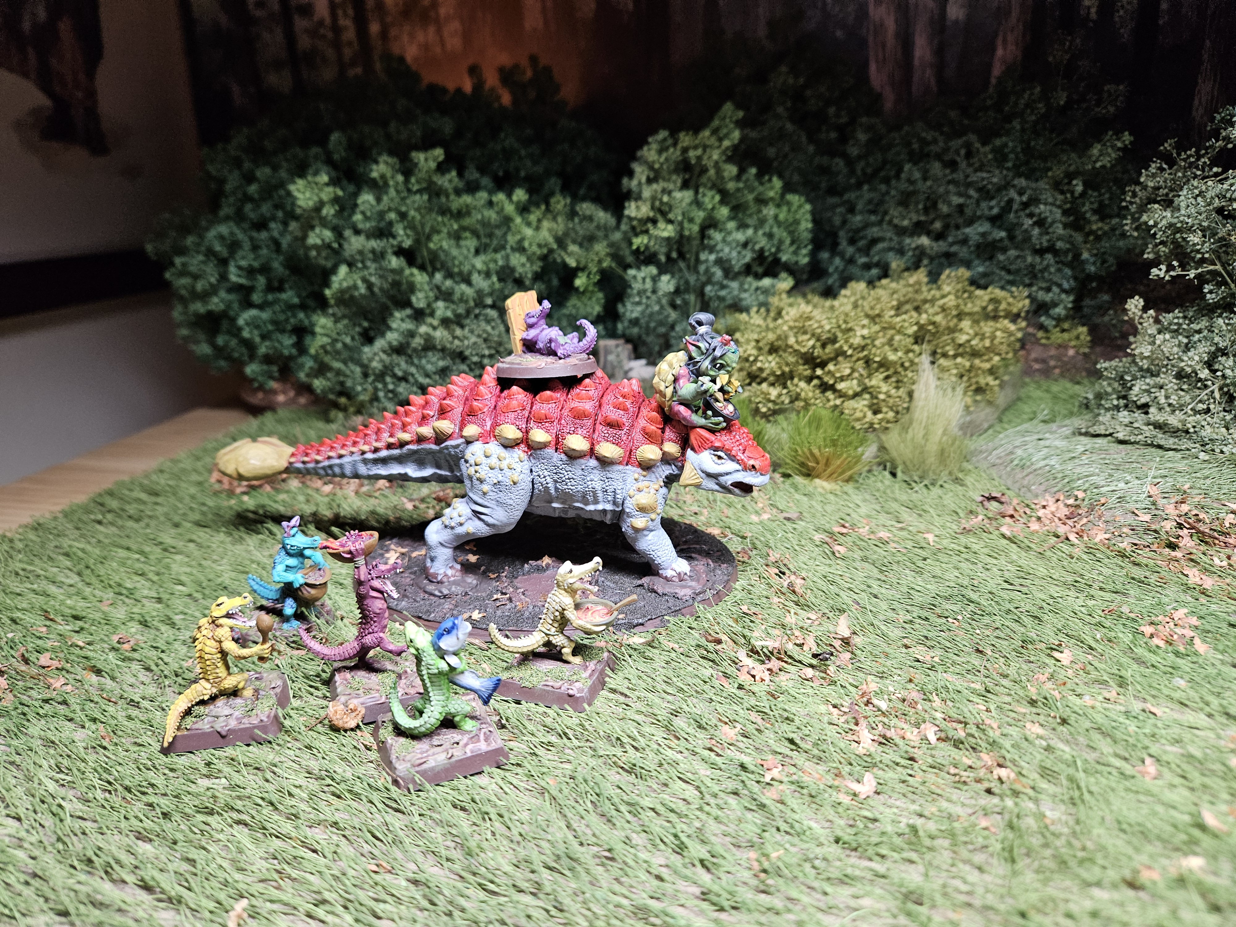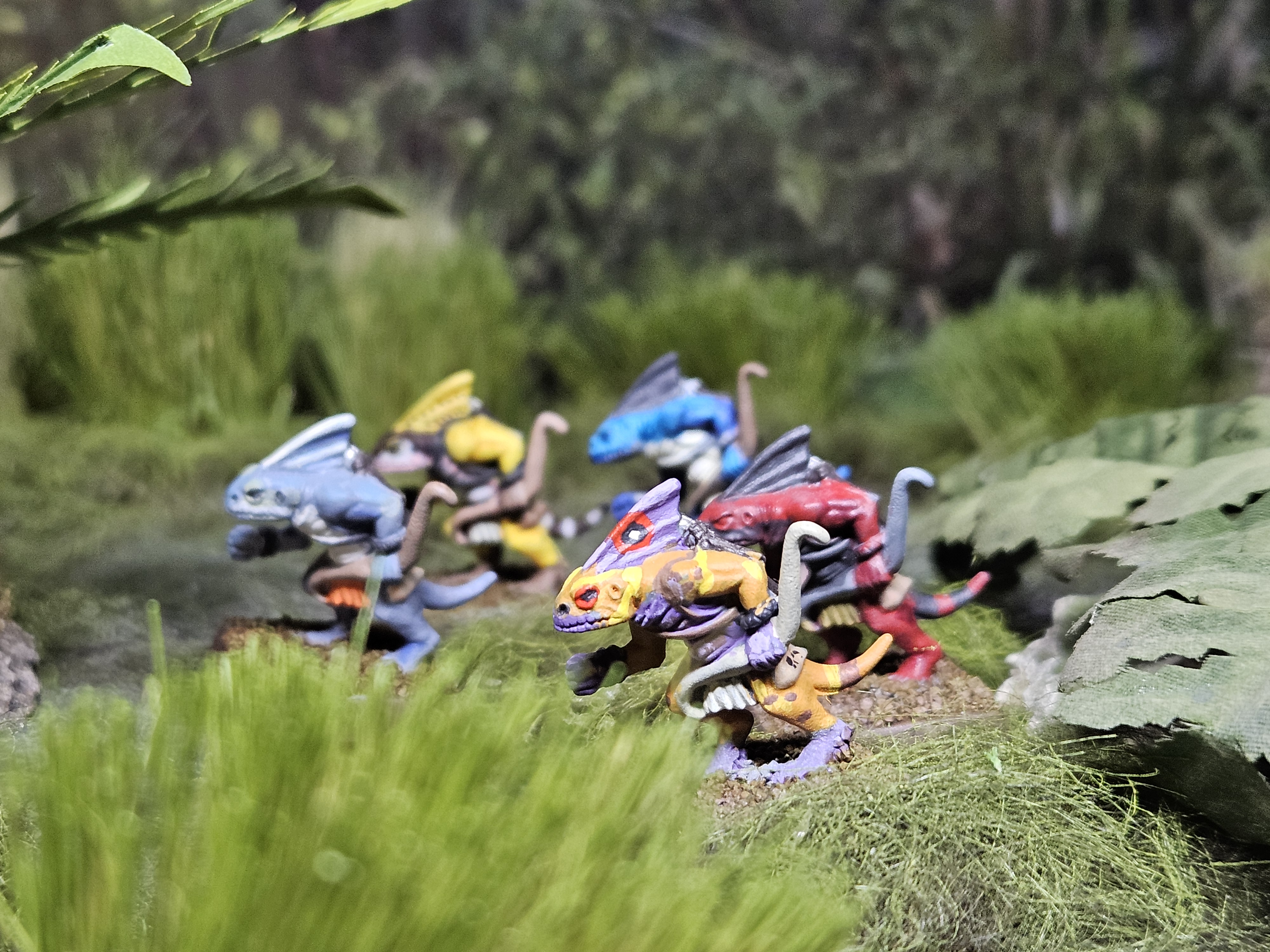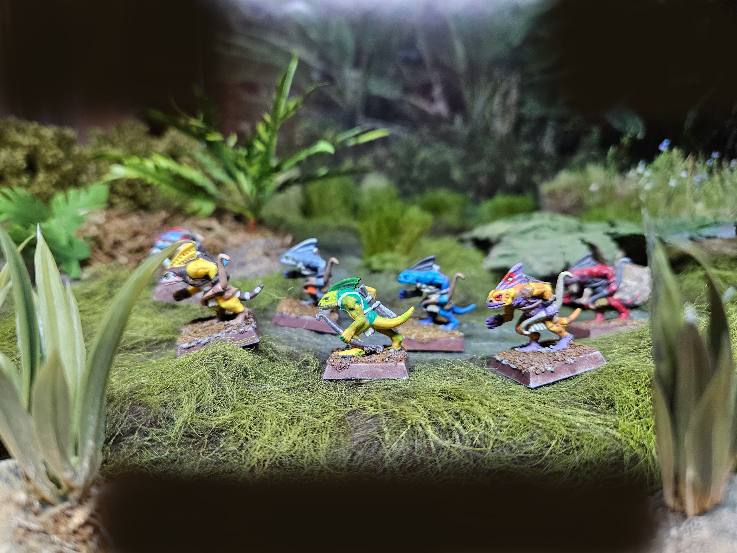 The minis in this army are (mostly) inspired by real-world herps. Attempts are made to pull from a variety of lizard families, but emphasis is on eye-catching and beautiful lizards, rather than being truly representative of all lizards (which tend to be single color, green, brown, or black, which does not make for an interesting army). Some models are exceptions: the Kappa is inspired by a variety of artworks and statues depicting the mythological creature, and many of the crocodilians are brightly colored like Kremlings rather than their muted real-world counterparts.