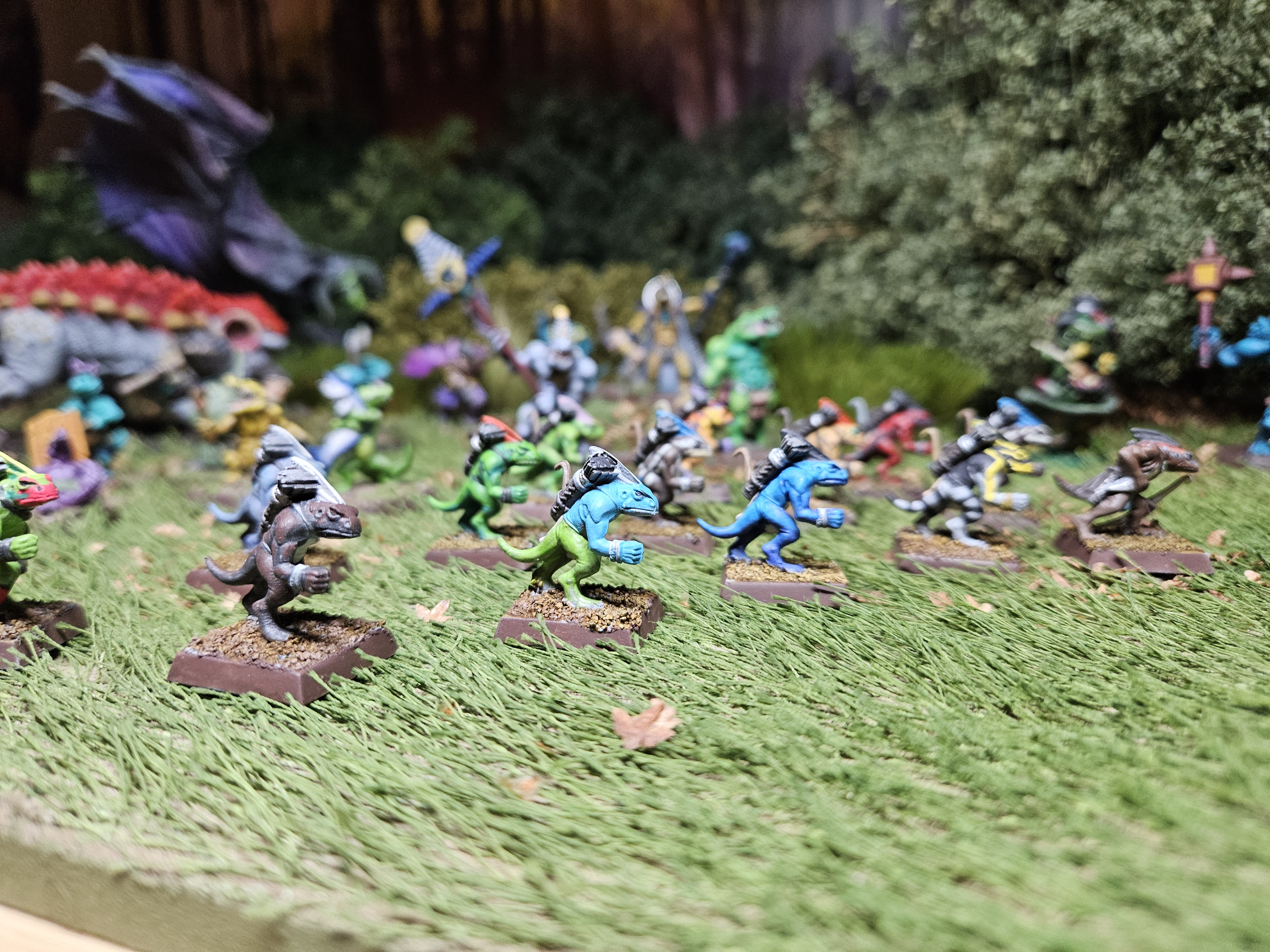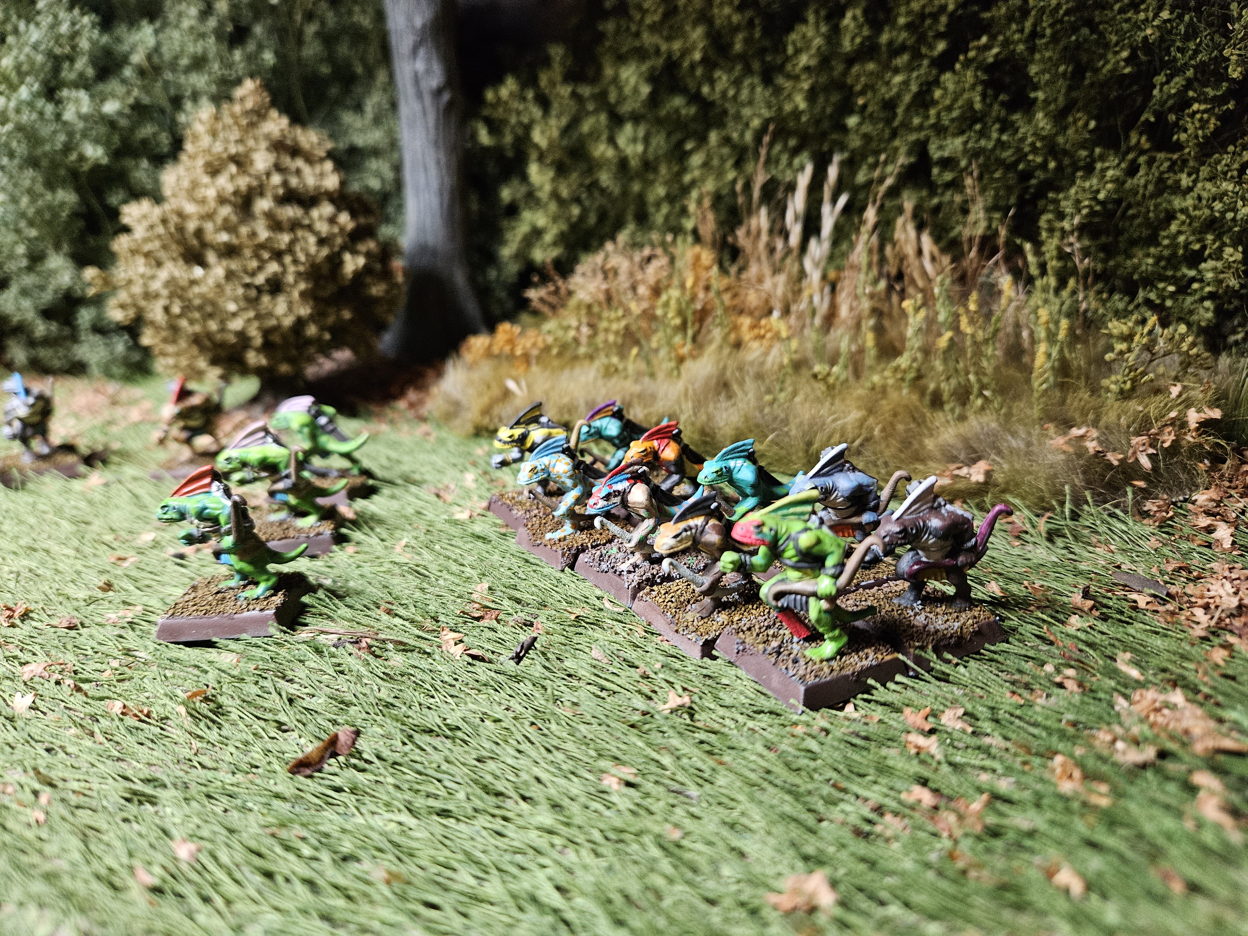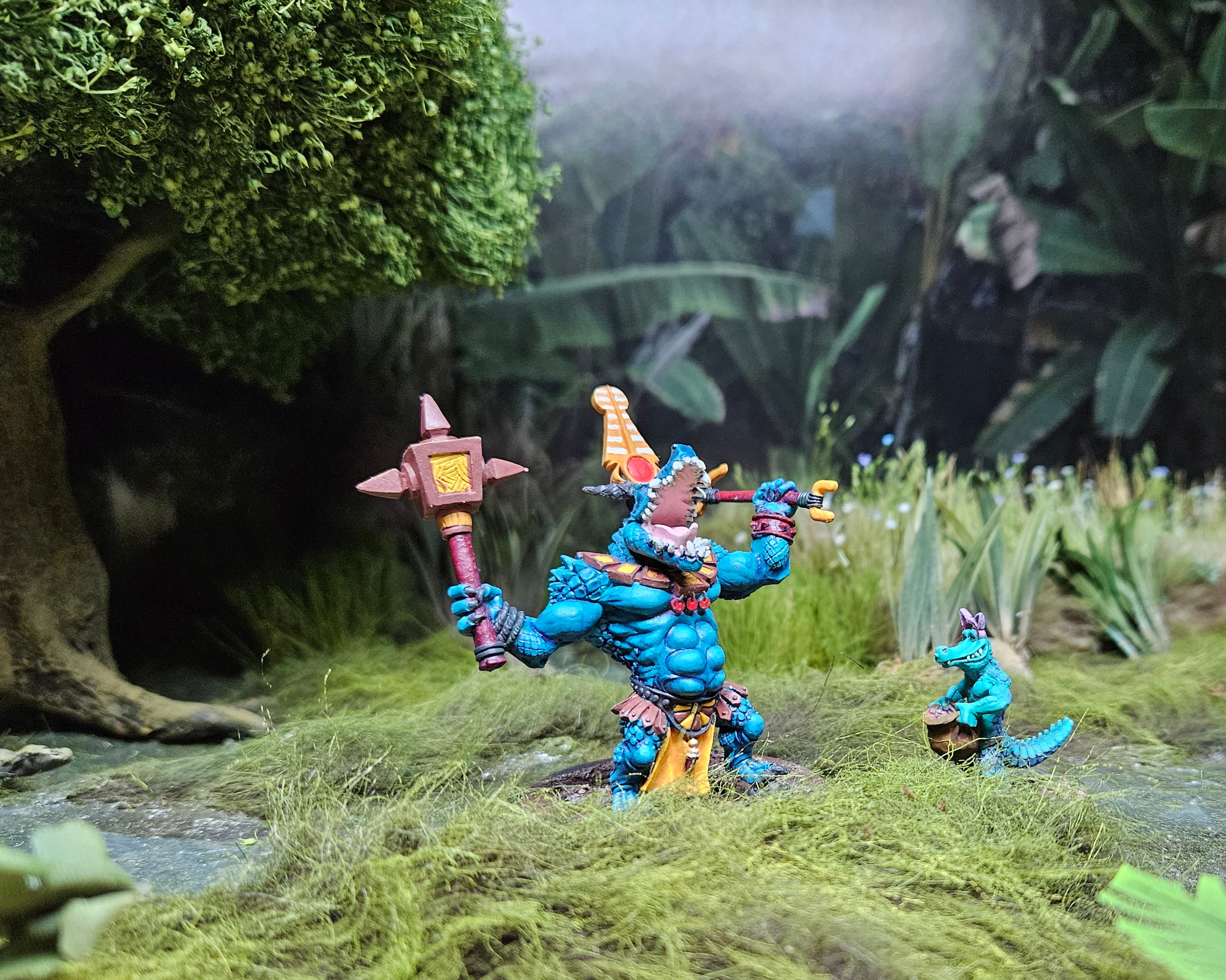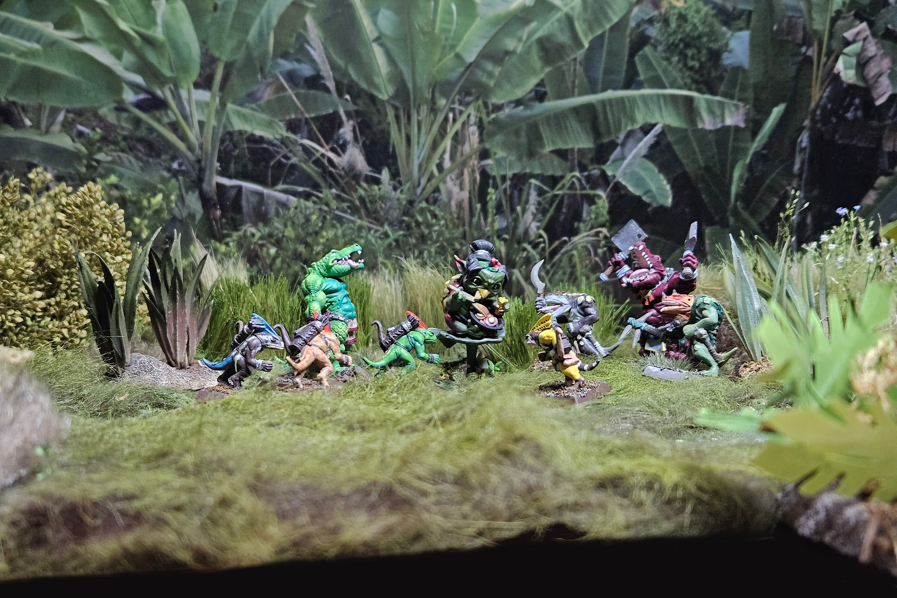 The minis in this army are (mostly) inspired by real-world herps. Attempts are made to pull from a variety of lizard families, but emphasis is on eye-catching and beautiful lizards, rather than being truly representative of all lizards (which tend to be single color, green, brown, or black, which does not make for an interesting army). Some models are exceptions: the Kappa is inspired by a variety of artworks and statues depicting the mythological creature, and many of the crocodilians are brightly colored like Kremlings rather than their muted real-world counterparts.