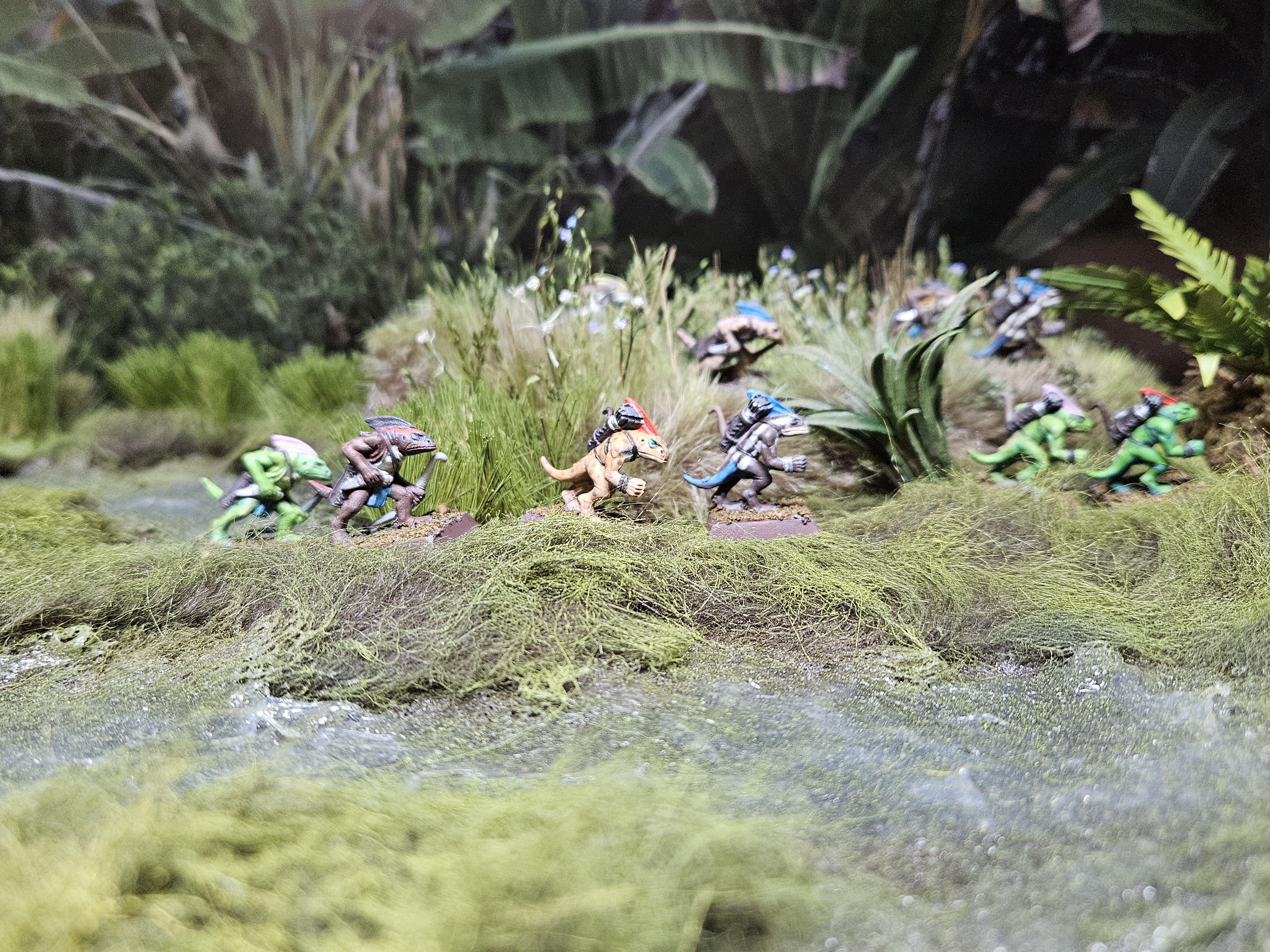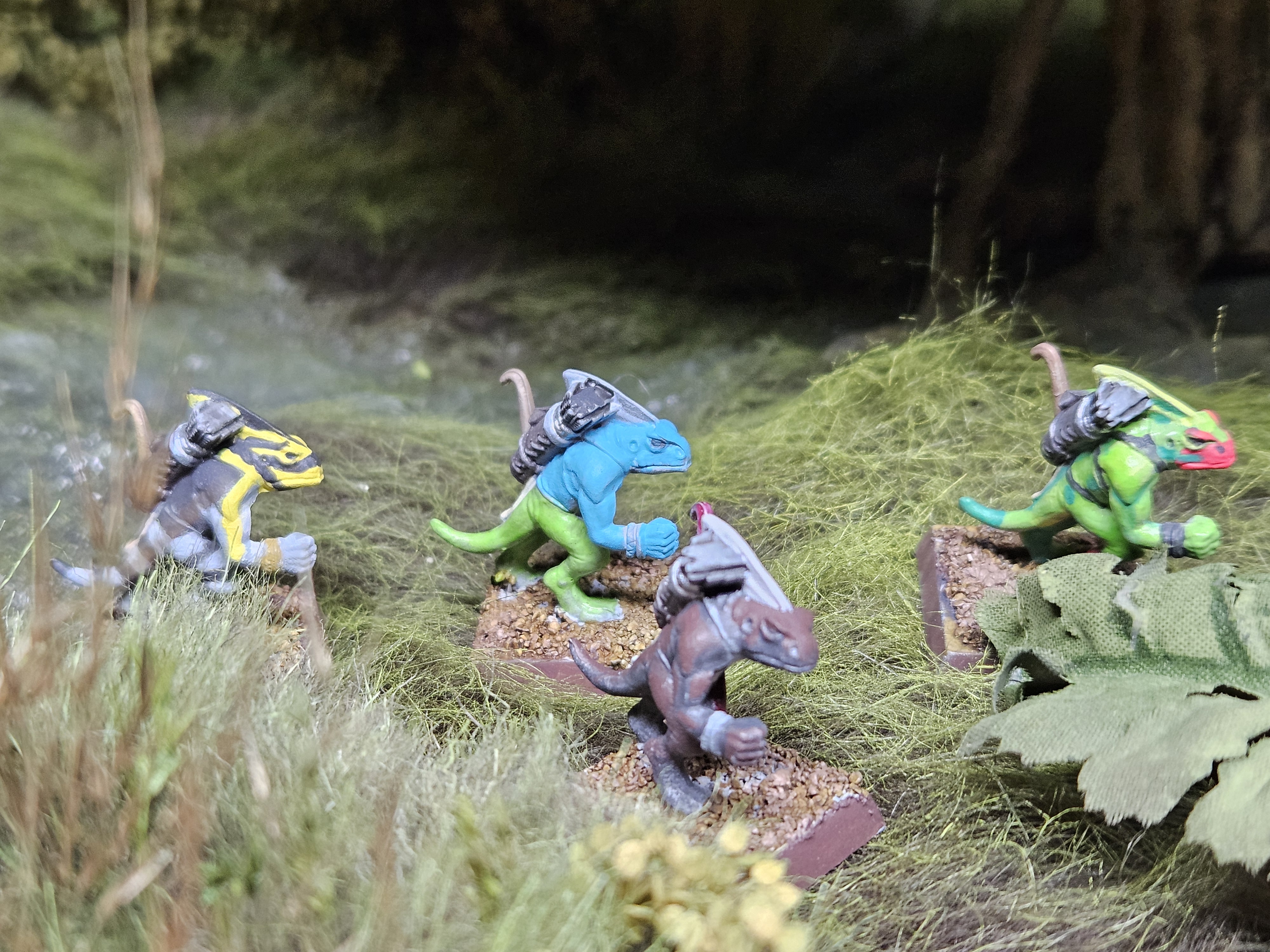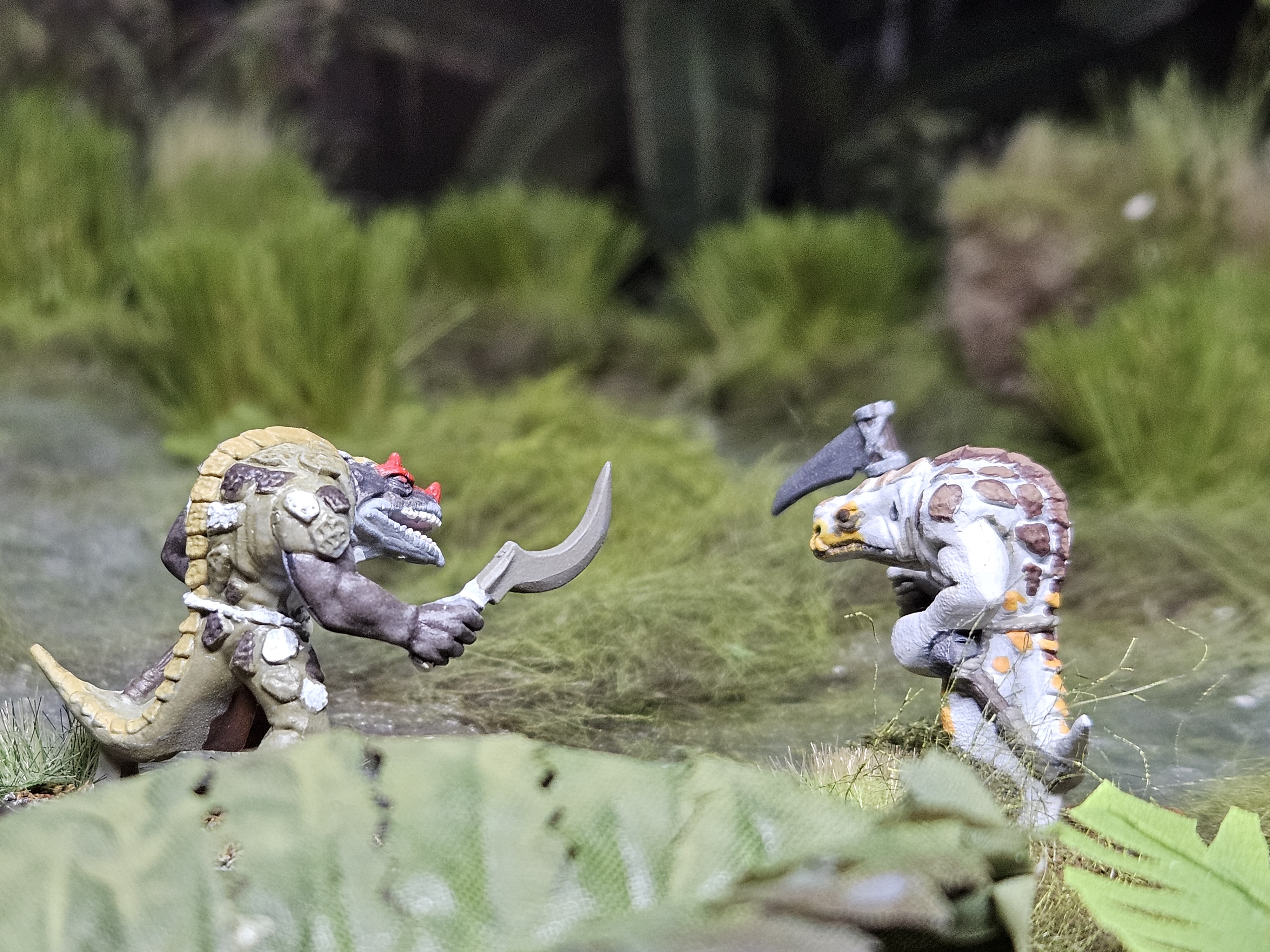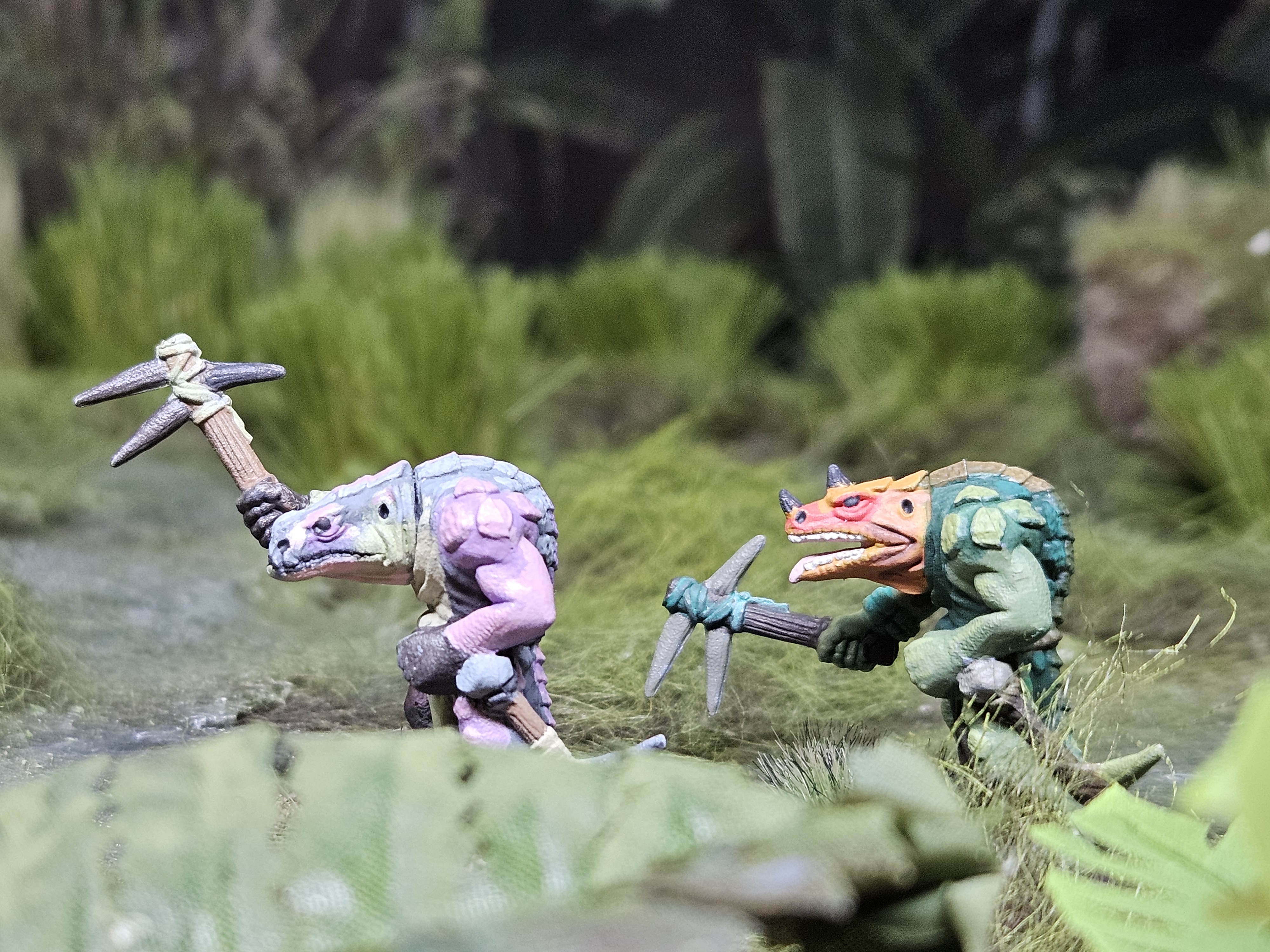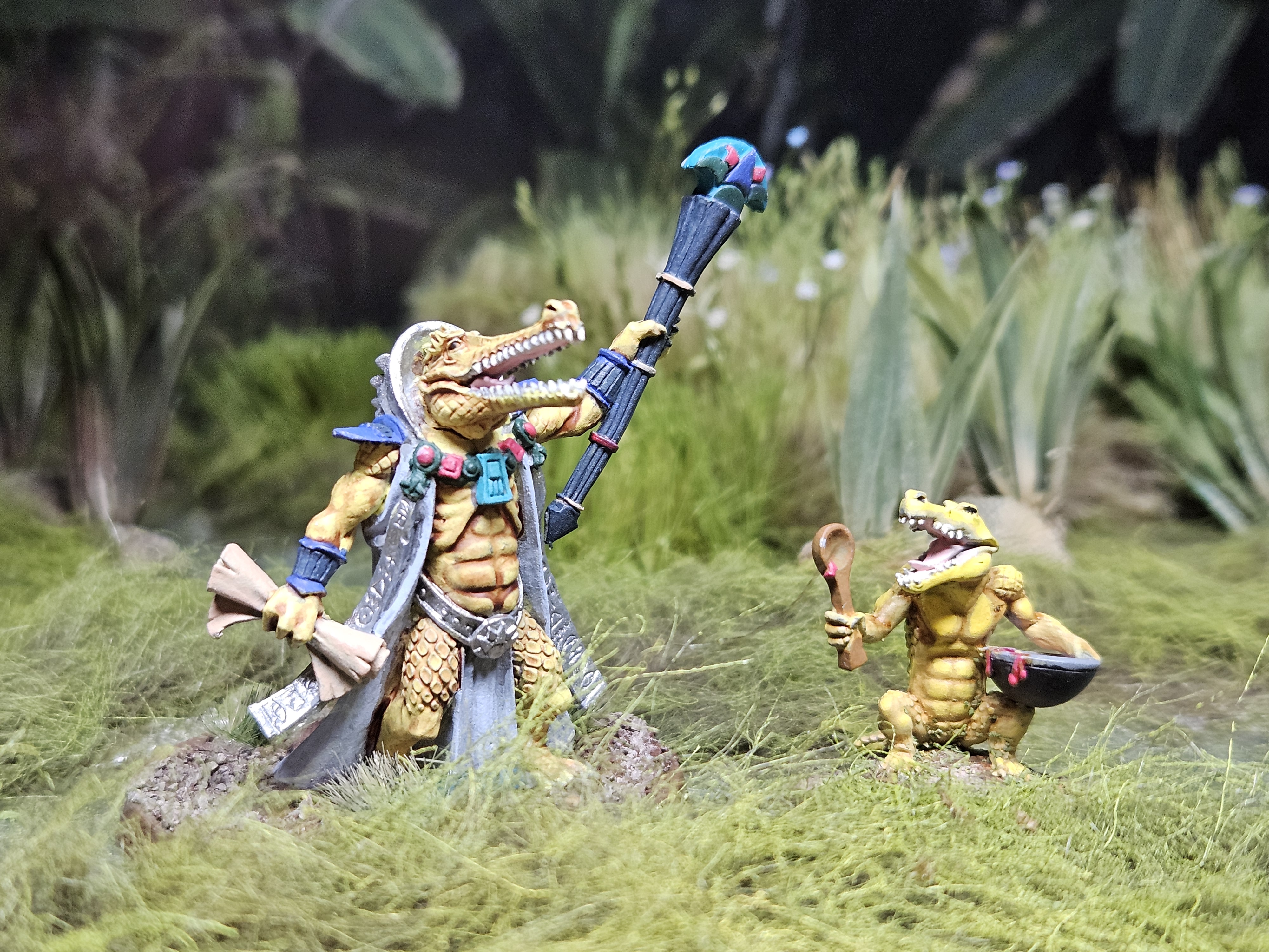 Among the many disparate saurian tribes, civilizations, and warbands, perhaps the one common shared trait is that no two groups can agree on the true meaning of the prophecies and plans of their gods and predecessors. Many meetings between frog mages result in months or years long debates, a silent psychic tangle which may only resolve in further disagreement. Some splinter groups are even lead not by a frog mage but by a lizard or gator, whose unique reading of some ancient tablet inspires their followers into a new plan. Other groups dig deep into esoteric knowledge, intent on the belief that intense study and meditation will reveal some as-yet undiscovered hidden plan within the plaques and writings they hold dear.